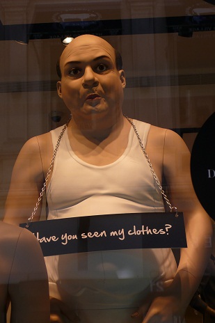 街を歩いていると、ショーウインドの中に下着姿のおじさんがいました。